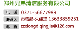 鄭州兄弟清潔服務(wù)有限公司是經(jīng)工商局注冊(cè)( 91410105681799742M),具有獨(dú)立法人資格的專(zhuān)業(yè)清洗公司。公司成立于2008年,一直致力于清潔技術(shù)的研發(fā)與實(shí)踐,并取得了令人矚目的成績(jī),目前擁有合作單位數(shù)百家,客戶(hù)遍及全省。 我公司是一家專(zhuān)業(yè)公共場(chǎng)所清潔服務(wù)提供商。主要為社會(huì)各類(lèi)大型酒店(賓館)、企事業(yè)單位、商場(chǎng)、學(xué)校...【查看詳細(xì)】